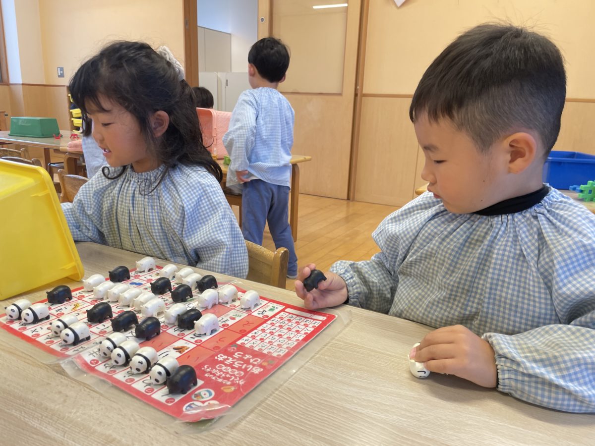 今日、りんご組のお友だちは自分の手拭きを使って、折り紙みたいに折ったり、半分にしたりしながら楽しんでいました。折り紙を目の前に置くと、折り紙にも挑戦。四つ角を折ってみたり、三角に折ったりを楽しんでいました。一人がしていると、他のお友だちも楽しむ姿があり、大きい子にパックンチョの作り方を教えてもらったりする姿もあり、とても微笑ましいすがたがありました。