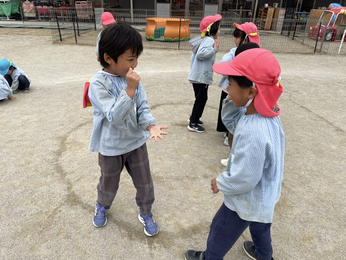 すると「こっちとむこうからはしってきてじゃんけんするやつしよ!」と遊びを発展させていました。