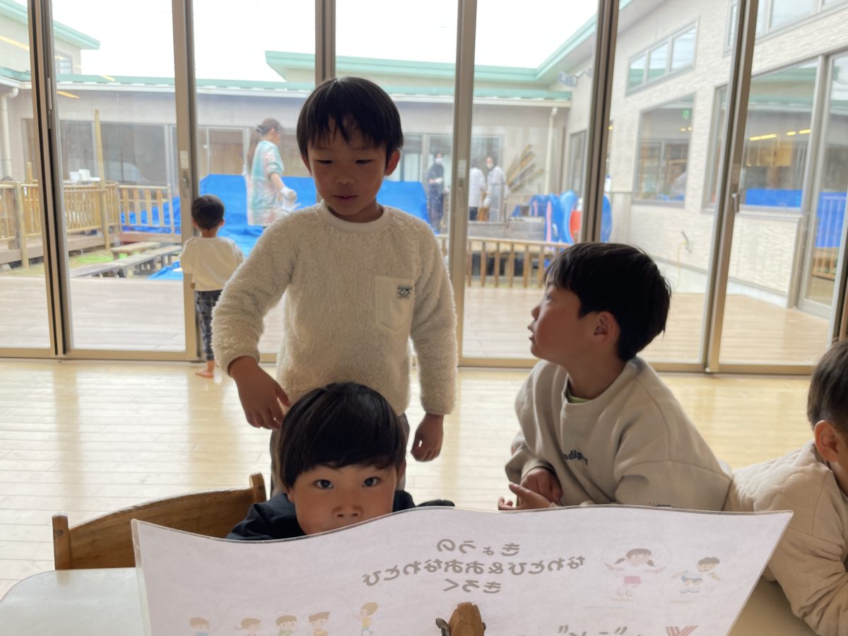 最近大流行りの大縄跳び。みんなが毎日自分の記録、他の子の記録に向かって頑張る姿が見られます。特にここ2、3日の間に記録更新が何度かあり、150回以上、200回以上跳ぶお友だちも居てとても感心しています。また自分の記録を超えられたくないお友だちは他の子の記録にも注目していて、記録の表を飾ってあるのですがそれを見ながら、「今日の記録どうなっとる?」「まだ名前入ってる?」「よし、昼から挑戦しようかな?」「応援しとるで頑張れ!」「○○くんならいけるよ!」と次への意欲を見せながら記録更新を目指して頑張る姿があったり、その頑張る姿を見ながら応援する姿も見られます。また挑戦している横で「わたしの記録抜かされる~!」と悔しそうにする姿なども見られ、お互いに良い刺激、励みになっているようで、今後の記録も楽しみです。