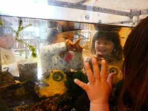 お魚を見ていたのに、今度はお友達が見えたよ!「あー〇〇ちゃん」と大興奮。お名前を呼びながら指を差し合い喜んでいましたよ。