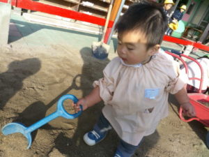 2026年3月17日 / 最終更新日 : 2026年3月17日 保育士 0歳児3歳児4歳児5歳児 お給食おいしいね!! お砂場の砂が少なくなってきたので園庭の多いところから砂を集めていると、0歳児のお友だちが自分でスコップを持ってきてお手伝いに来てくれました。砂を集めようとする姿がかわいらしいですね! この日はお別れ給食でした。からあげやポテト、おにぎり等子どもたちの好きなものがいっぱいです。「おいしい!!」「今日はいっぱいある!」などお話ししながら、ホールで3・4・5歳のみんなとおいしくいただきました!!
