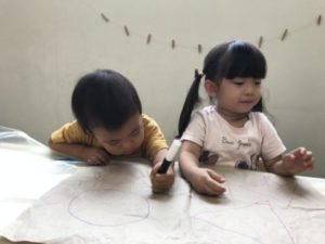 なに描いてるのかなぁ~と隣から覗いてるお友だちです!