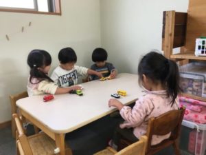 ブッブー!!みんなでミニカーを走らせ楽しそうです。