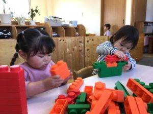 ブロック遊びに夢中になるお友だち