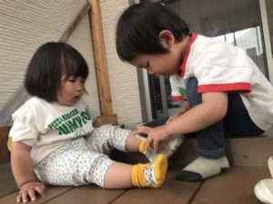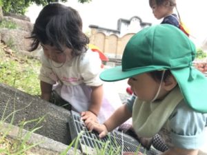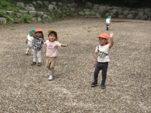 園外へも興味が広がるといいなぁ~、などと思い今日は子どもたちが園庭で遊んでいる間にちょっと仕掛け。園周辺施設の地図や公園内遊具の写真カード等を机の上に広げてみました。すると・・・園庭から帰ってきた2歳児の子が見つけ「さんぽ、いきたい!」「ここいきたいよね~」「ここはママといったことある」など様々な声が聞こえてきます。1枚の園周辺施設の地図を囲みながら「ここにしよっかなぁ?」「〇〇はここいきたいの」「△△はここがいい」と子ども会議が始まったようです。暫くその様子を見学していると・・・「せんせいはどこがいい?」などと聞きに来てくれた子の姿がありました。「ん~、どうしよう?どこにしようかなぁ?」っと返答してみると「ここがいいんじゃない?」とイチ押しの場所を教えてくれました。子どもたちのこのような思いを叶えたいなぁと今日は園外へ出掛けてみることにしました。午前のおやつを食べ終え、絵本を開いて見ている子もいます。保育士が園外へと出掛ける準備をしている姿を見て、2歳児の子が「いきましょっか!」と。その声に思わずこちらがクスクスと笑ってしまいました。準備を済ませ、いざ出発!!目的の場所に到着すると広さに子どもたちは駆けだしていました。広場を走り、友だちの所へ行きタッチ!している子や岩陰をじーっと観察し昆虫探しに夢中になる子など子どもたちそれぞれに好きな遊びを楽しむ様子があり、2歳児の子が1歳児のお友だちの様子を気にかけ傍へと見に行ってくれるというステキな姿を見る事もできました。沢山遊んでお腹がペコペコ。子どもたちみんな美味しそうに給食を頬張っていました。「おかわり!」子どもたちから聞こえてきます。いっぱい遊んで、いっぱい食べて、みんな大きくなっていくのが楽しみですね。