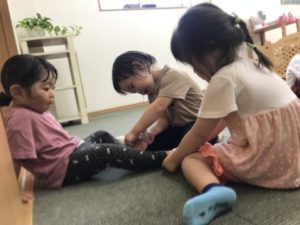 くつした、はける?おてつだいしてあげるね。
