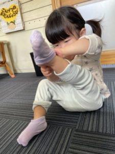 ぎゅ~っ、靴下はけたかな?