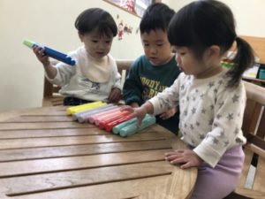 3人いっしょに!「どーぞー」「あーとー(ありがとう)」というかわいいやりとりもありましたよ。