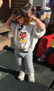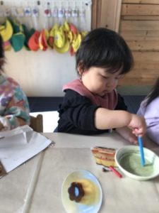 お友だちが使っているのは何?こうやってやるのかな?大きいお友だちが使っているのをじっと観察。上手にギュッと握っています。