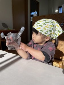 てぶくろ付けるのって、むずかしい・・・。
