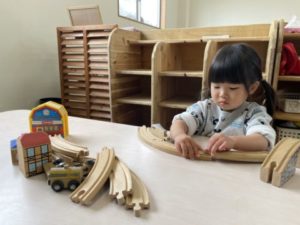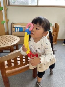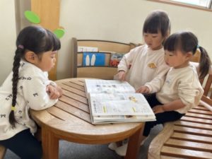 「おえかきしたいから紙とかきかきちょうだい!」と2歳児の子がリクエストにやって来ました。リクエストのあったアイテムを幾つかのトレーの中に入れ、机の上に並べてみました。子どもたちはトレーの中から好きなアイテムを選び遊び始めています。トレーの中に入っていた紙にお絵描きをする子や折り紙を折ってそこにシールを貼り「おてがみつくったよ」と、お友だちに見せている子など様々な姿がありました。折り紙に載っているイラストが気になり「どれがいい?」とお友だちに訪ねています。「これがいいなぁ~」「わかった!」そこから「ハサミ、ちょうだい」と。ハサミを使ってお友だちが「これがいい!」と言っていた折り紙のイラストを器用に切り抜き「はい、どうぞ!」切り抜いたイラストを貰ったお友だちも「じゃあ、どれにする?」と尋ねていました。どうやらお返しをするようです。貰ったらお返しをしている子どもたち。誰もそうしたら?などと言う事は無いですが・・・それを自然に出来る子どもたちの姿に感動です。ステキなひとコマを見ることが出来ました。子どもたちの興味はあらゆる所から湧き上がって来ます。折り紙で遊んでいたと思ったら、次は動物図鑑に載っていた動物やコウモリに興味が広がっていきました。動物図鑑の中に載っているどの動物より興味があるのは「コウモリ」2歳児の子が「けいたいでコウモリみたらいいじゃん!」と。なんと今どき。子どもたちのリクエストでコウモリの生態動画を流してみる事にしました。すると・・・逆さまぶら下がるコウモリを見て「はんたいむきになってるじゃん!」「こわ~い」「ちょっときもちわるいね」と様々な声が聞こえ、もうコウモリに夢中。コウモリへの熱量が再熱の様です。明日もコウモリは再熱するのか?はたまた違う事に興味を示すのか?それは明日のお楽しみです。