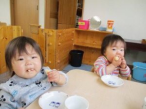 おやつのバナナを美味しそうに頬張っていました。